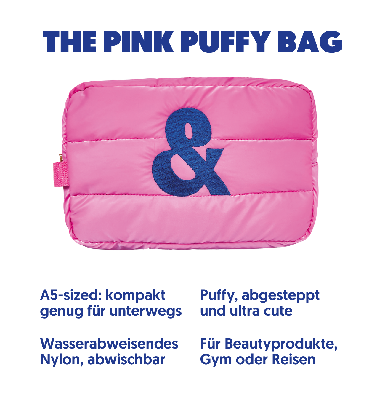 Wähle unsere neue XL Pink Puffy Bag als Startpunkt.