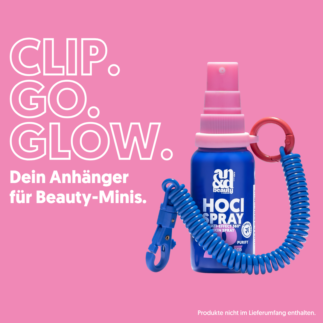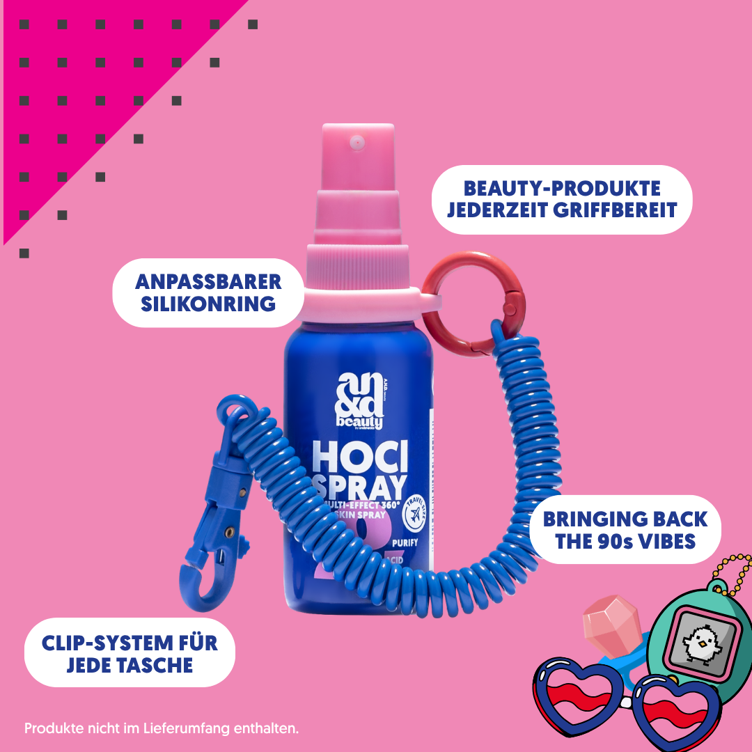 The flexible spiral clip with carabiner easily attaches to your bag, keys or beauty pouch and keeps your essentials always within reach. Nostalgic vibe, next level function.