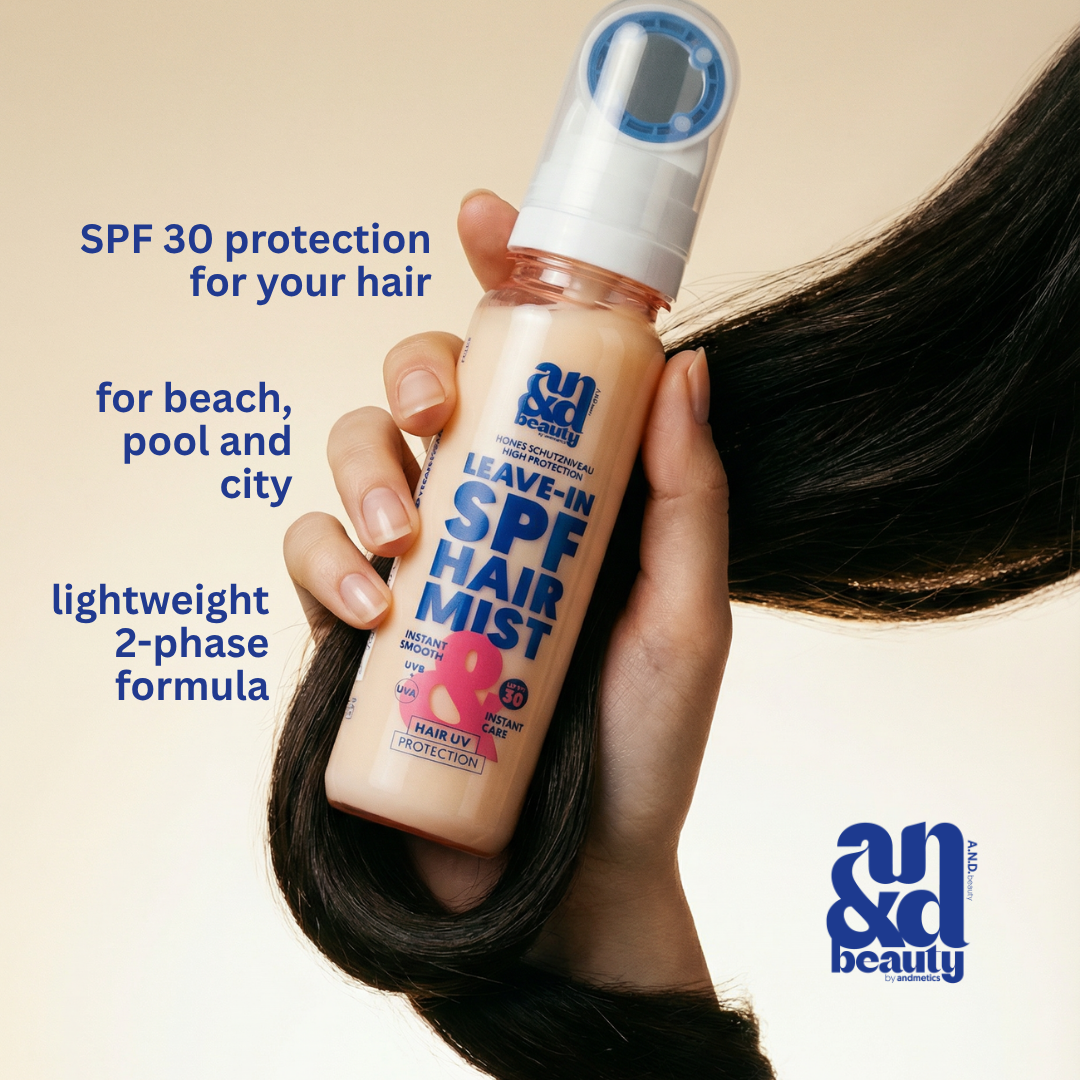 The SPF Hair Mist is your daily hair lifeguard for sunny days. The lightweight two-phase formula protects against UV rays, prevents dryness and leaves hair soft and shiny without weighing it down.